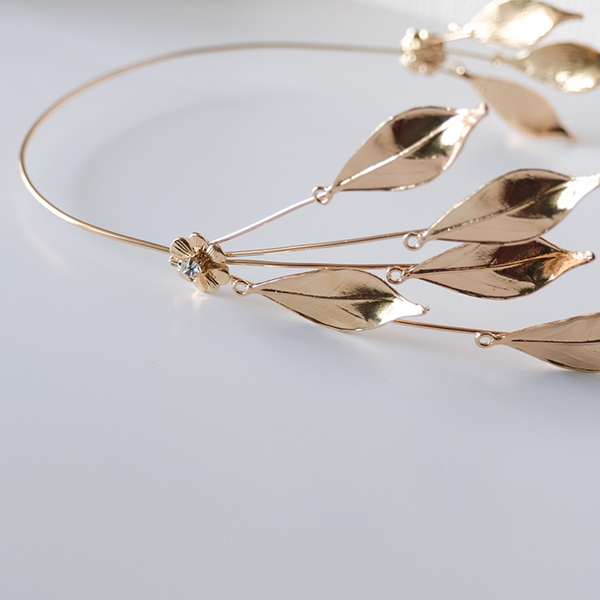【送料無料】ウェディングヘッドドレス ホーンクラウン 小枝ヘッドドレス リーフ ゴールド 【イヤリング付き】 q6|ウェディング・ブライダルアクセサリーならPIARY(ピアリー)