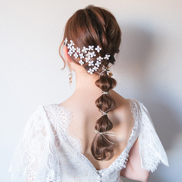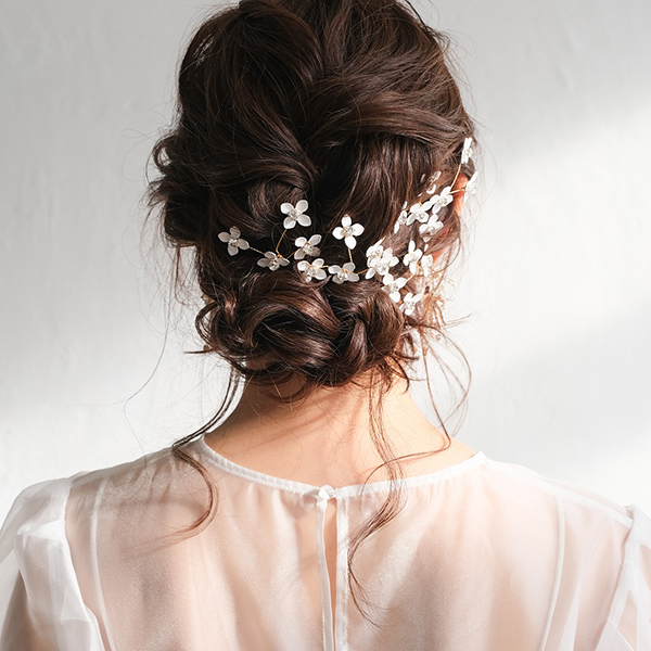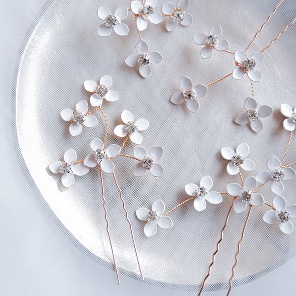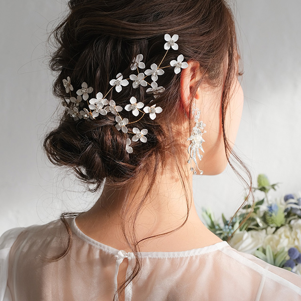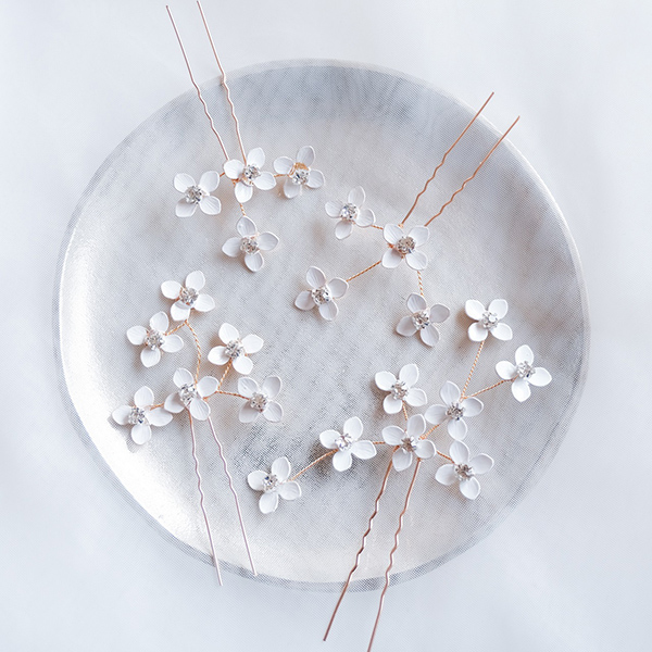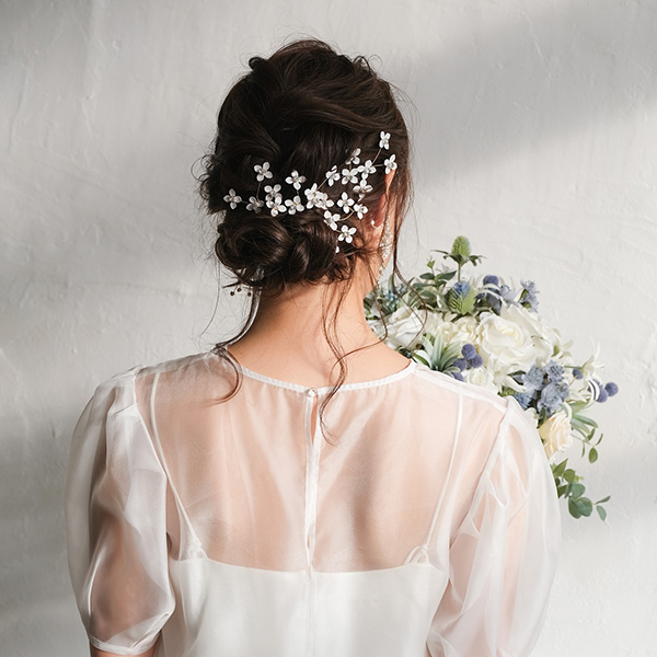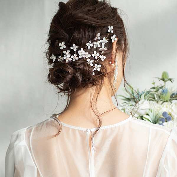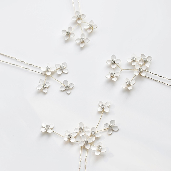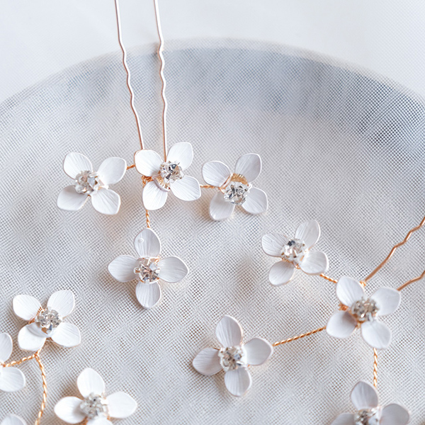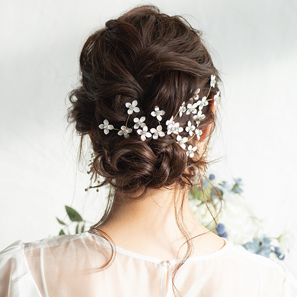 白い小花のピンタイプのヘッドドレスで、