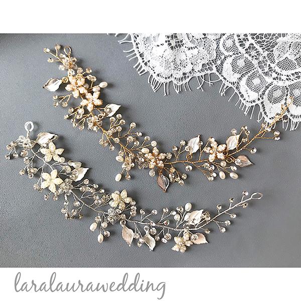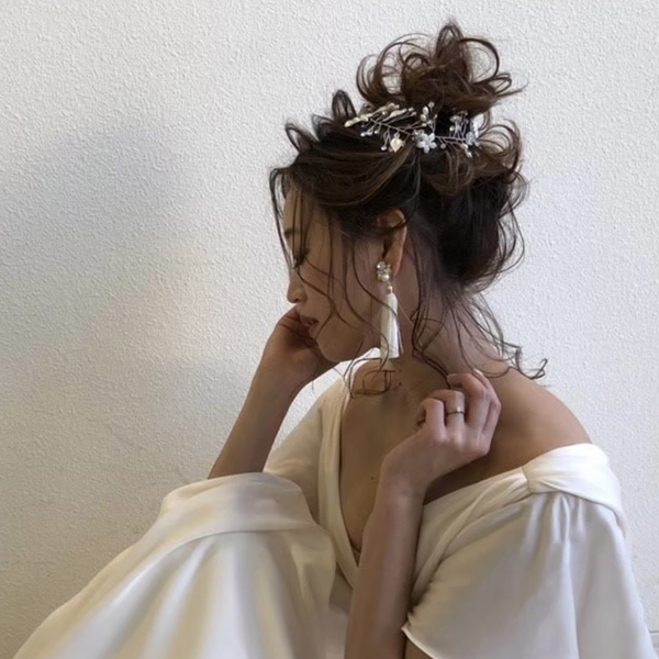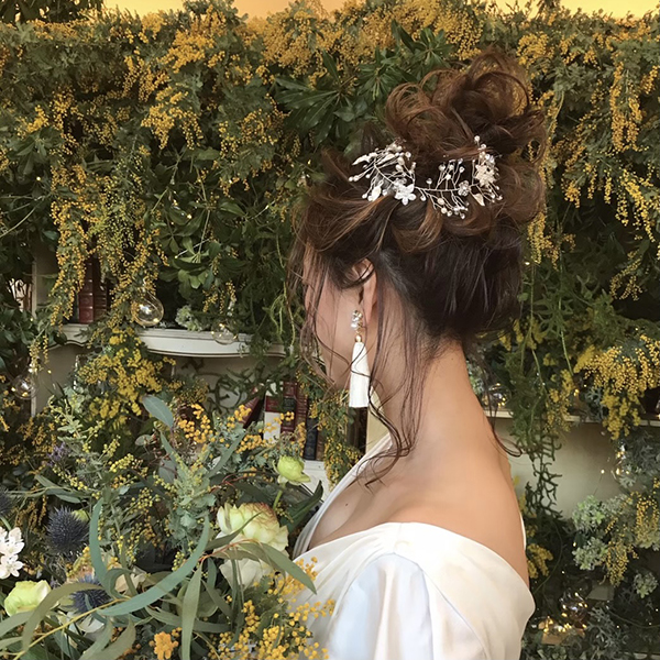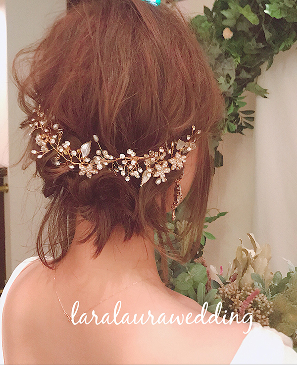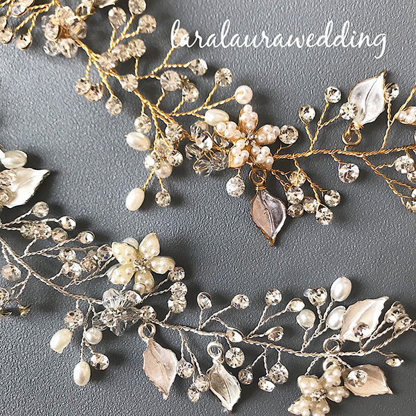 トレンドの小枝のヘッドパーツ。華奢なワイヤーでクリスタルやシルバーのストーンパールなのでナチュラルな雰囲気によく合います。トップ、サイド、シニヨンなど付ける位置を変えることでまた雰囲気も変わってきます。