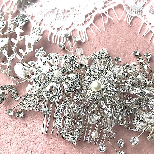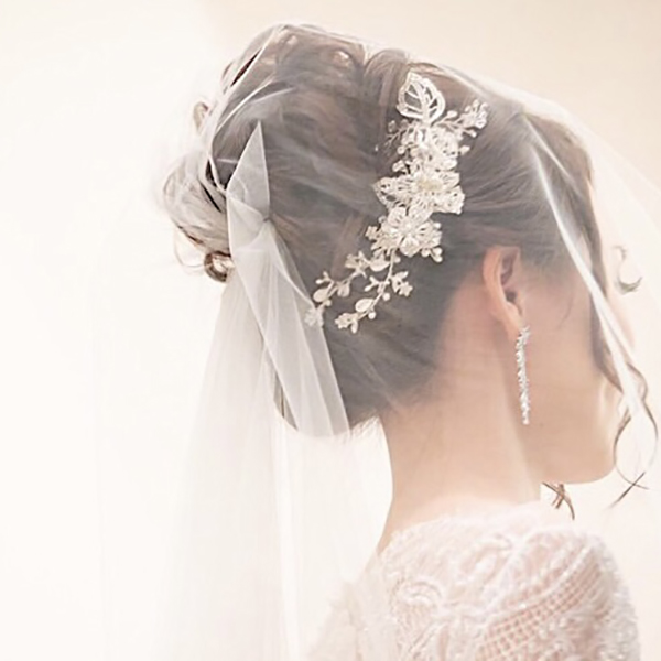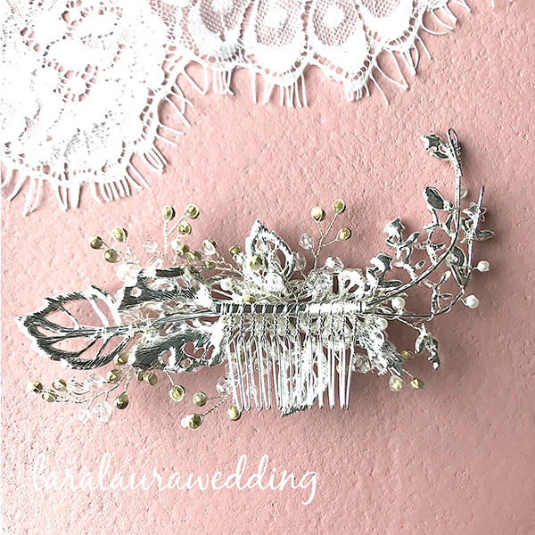 リーフとお花のヘッドドレスです。動きのあるデザインでより、かろやかなで上品な雰囲気に。クリスタルストーンが輝き挙式でベールと合わせても素敵です。