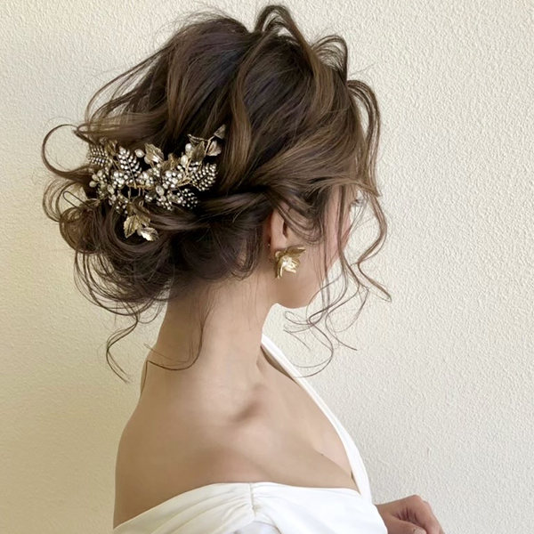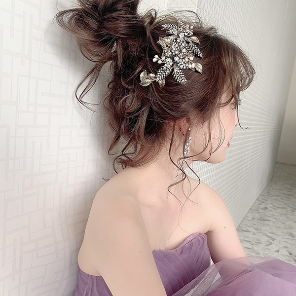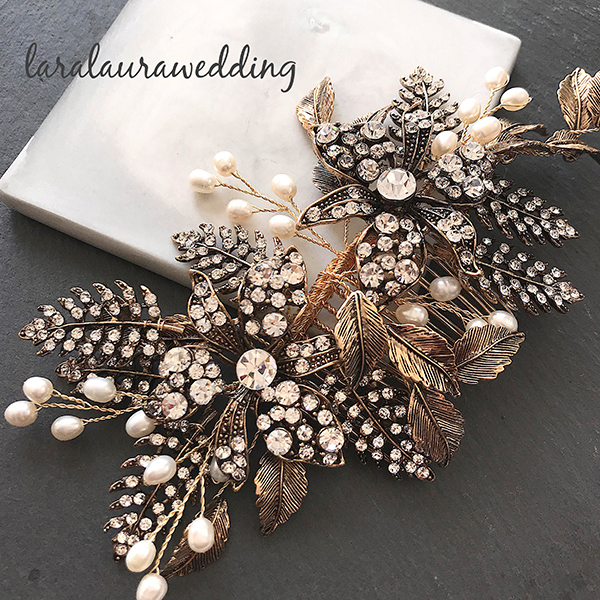 アンティークフラワーのヘッドアクセサリー。アンティーク加工の地金にクリスタルストーンをふんだんにあしらったヘッドアクセサリー。vintageラインのイヤリング、ピアスとの相性がとても良いです。アンティーク風ながら華やかさのあるヘッドドレスでトレンドの花嫁に…。