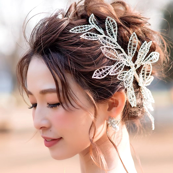 フラワーワイヤーのヘッドドレス。立体感のあるフラワーはワイヤーで丁寧にハンドメイドしてあります。ディテールにこだわり大きさもしっかりとあるので華やかにお召しいただけます。ワイヤーで出来ておりますので、ある程度形が変えやすくお好みのヘアアレンジと合わせていただけます。