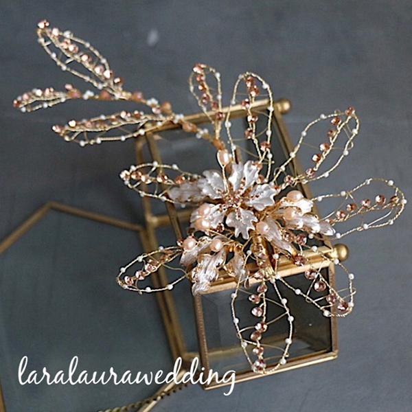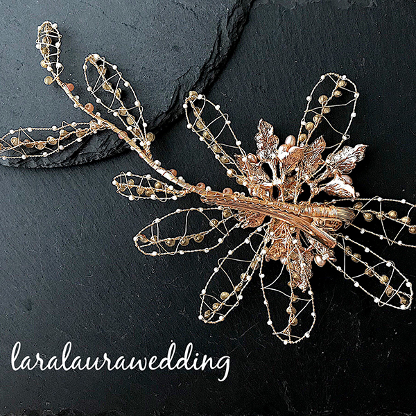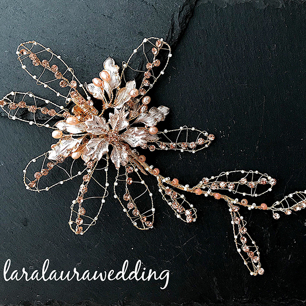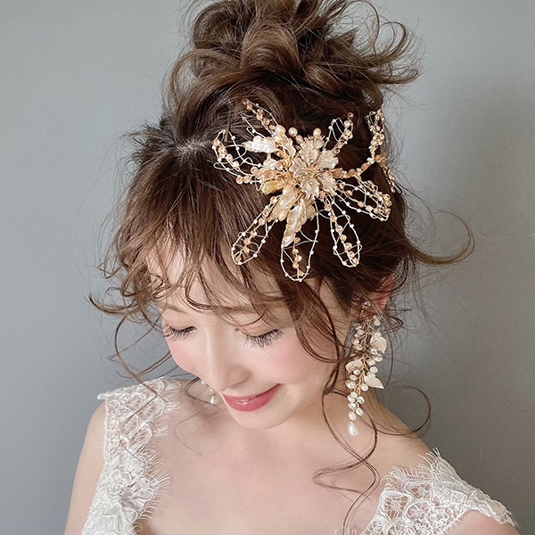 フラワーワイヤーのヘッドドレス。立体感のあるフラワーはワイヤーで丁寧にハンドメイドしてあります。ディテールにこだわり大きさもしっかりとあるので華やかにお召しいただけます。ワイヤーで出来ておりますので、ある程度形が変えやすくお好みのヘアアレンジと合わせていただけます。※止める部分はクリップになっております。