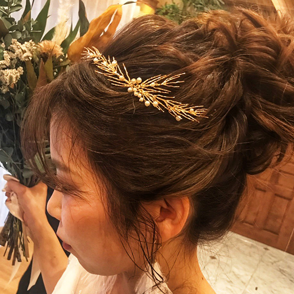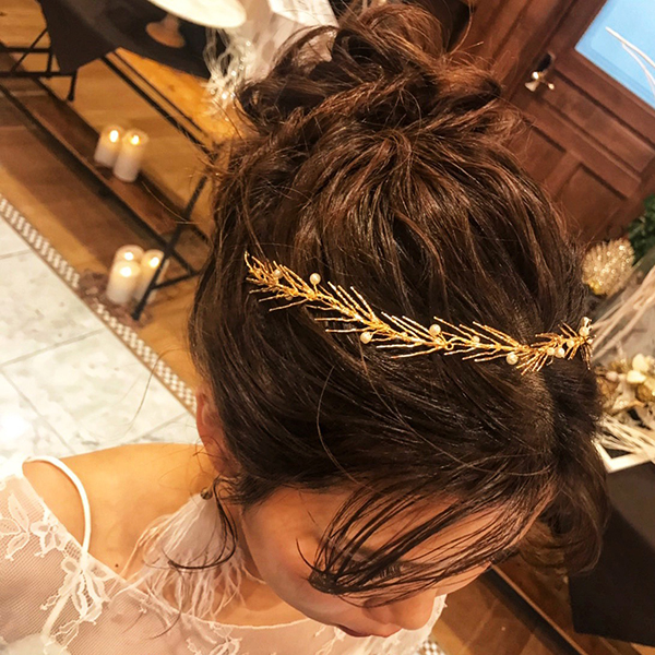 シンプルなゴールドの枝にパールをあしらったヘッドアクセサリー。組み合わせで様々なスタイルが楽しめます。ナチュラルなアクセサリーでこなれ感とあなたらしさを。