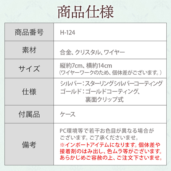 | 材質 | 合金、クリスタル、ワイヤー |