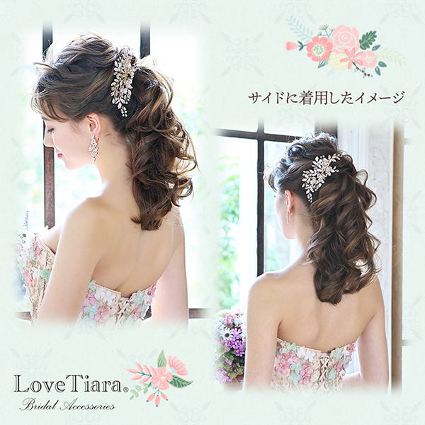 ヘアチェンジをしなくてもつける位置をアレンジできるので、2つのシーンでコーディネートの印象を変えたい花嫁さまにもおすすめです。