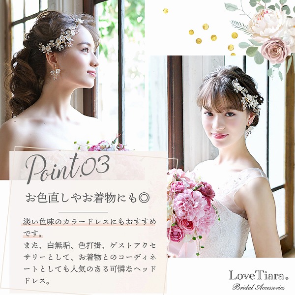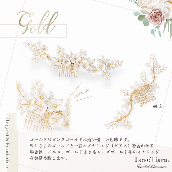 ワイヤーワークで角度等自由に曲げられるので、前髪付近やサイド、バック等お好きな位置で私らしいスタイリングをお楽しみいただけます。洋装だけでなく、和装に合わせても素敵です。お揃いのイヤリング/ピアスもございます。