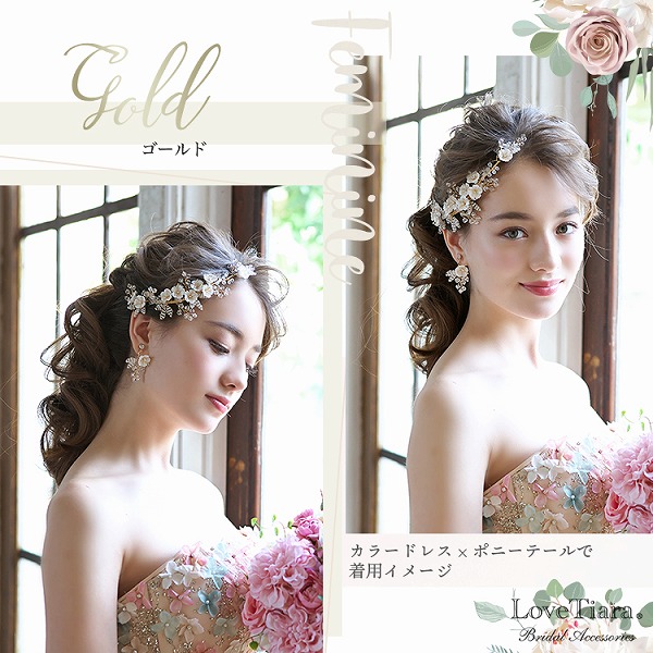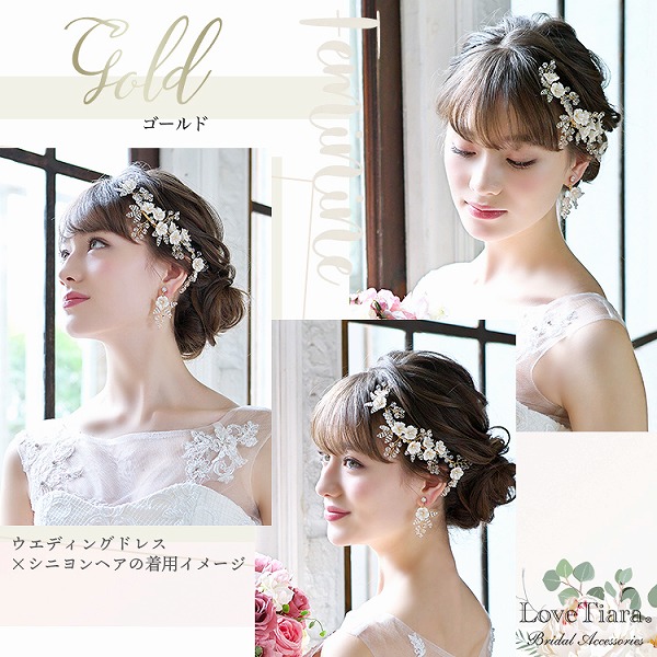 ヘッドドレス【ルチア】 ゴールド|ウェディング・ブライダルアクセサリーならPIARY(ピアリー)