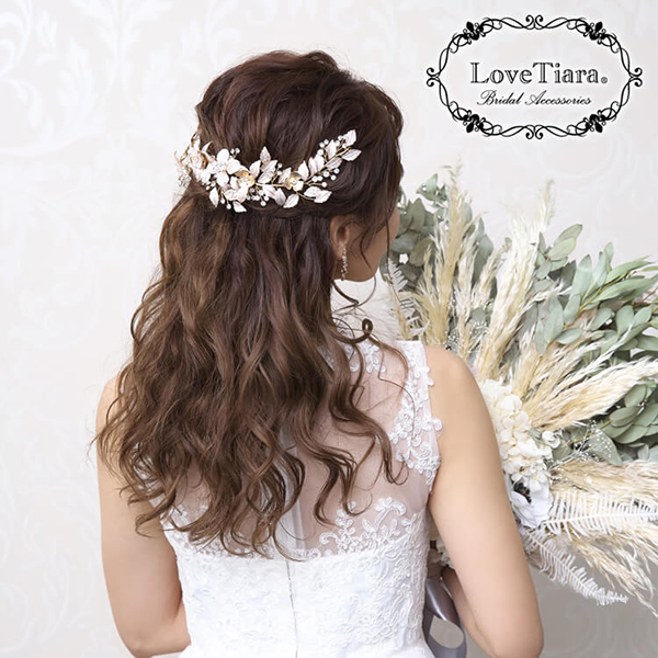 ワイヤーワークで角度等自由に曲げられるので、サイドやバック等お好きな位置で私らしいスタイリングをお楽しみいただけます。洋装だけでなく、白無垢や振袖等の和装に合わせても素敵です。