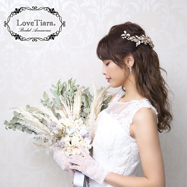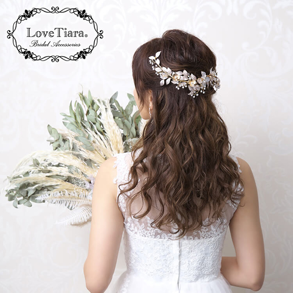 ワイヤーワークで角度等自由に曲げられるので、サイドやバック等お好きな位置で私らしいスタイリングをお楽しみいただけます。洋装だけでなく、白無垢や振袖等の和装に合わせても素敵です。