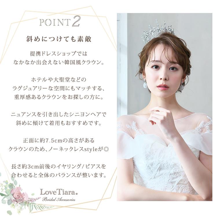 大小サイズが様々なクリスタルが上品に輝く、360度魅せるラウンド型韓国風クラウン。