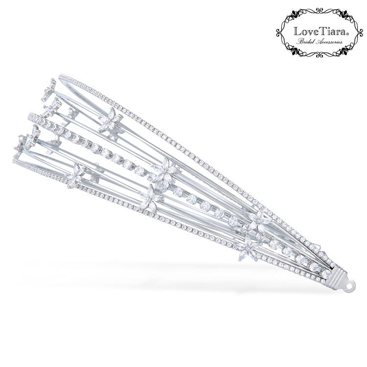 ジルコニアのダイヤレーンやお花や星を彷彿させるモチーフが交互に連なった 華やかでドラマチックなデザインです。煌めく大人カチューシャで、ウェディングドレスだけでなくカラードレスにも。キュービックジルコニアがダイヤモンドの様に煌めき、変色しにくい上質なロジウムメッキで重厚感もございます。ワンランク上の花嫁スタイルが理想の方に。お色はシルバーです。