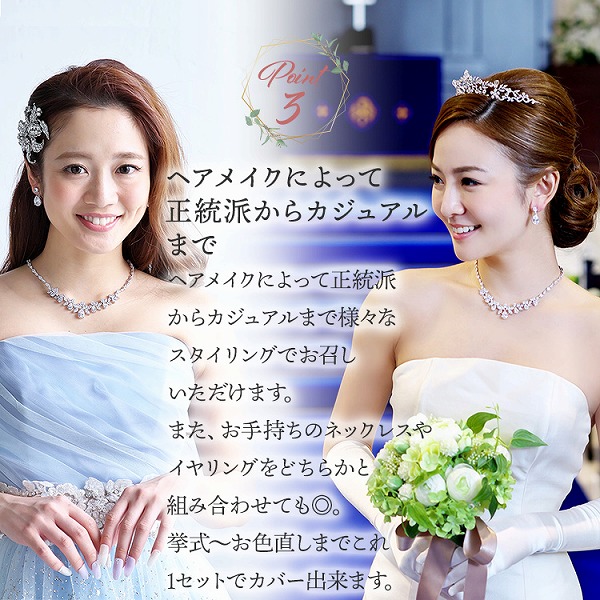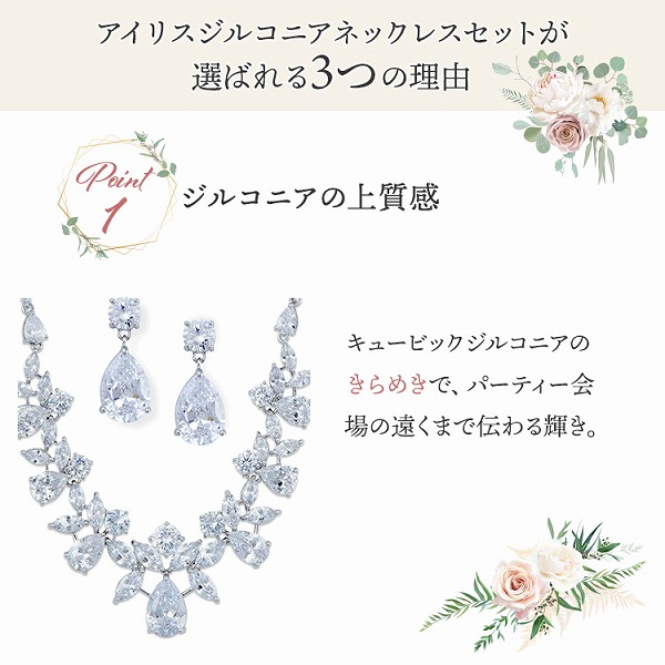 キュービックジルコニアのきらめきでパーティー会場の遠くまで煌めきが伝わります。