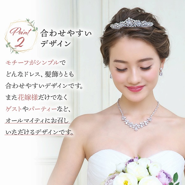 モチーフがシンプルでどんなドレス、髪飾りとも合わせやすいデザインです。