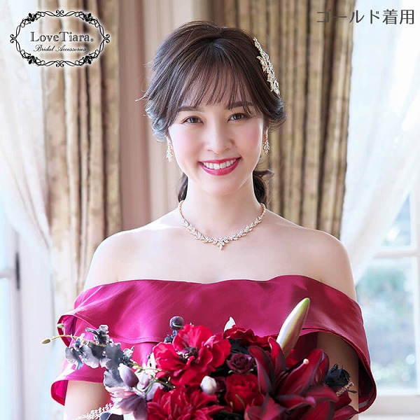 クラシカルジルコニアネックレス&イヤリングセット ゴールド|ウェディング・ブライダルアクセサリーならPIARY(ピアリー)