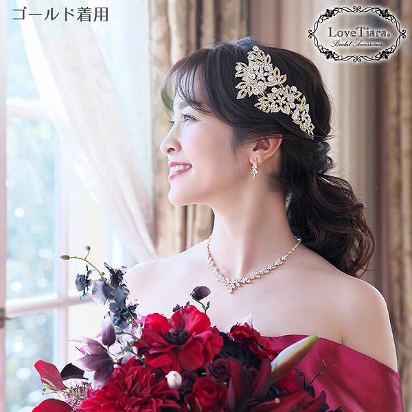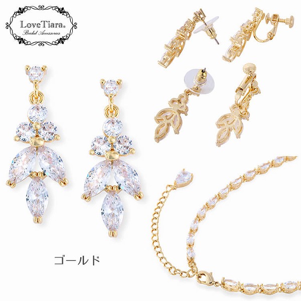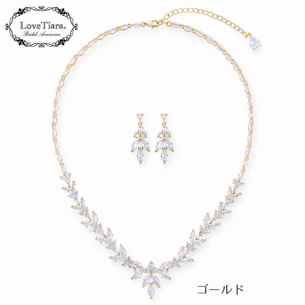 クラシカルジルコニアネックレス&ピアスセット ゴールド|ウェディング・ブライダルアクセサリーならPIARY(ピアリー)