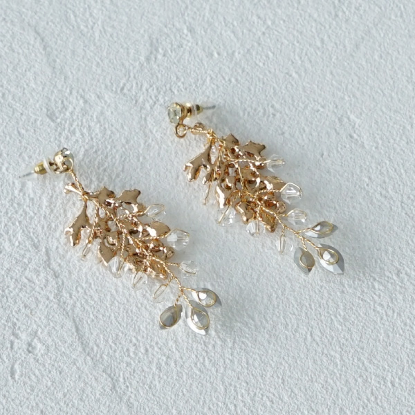 【送料無料】ウェディングピアス 小枝 ゴールド リーフ|ウェディング・ブライダルアクセサリーならPIARY(ピアリー)