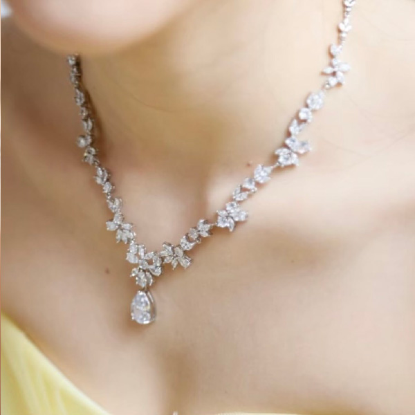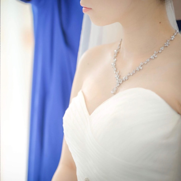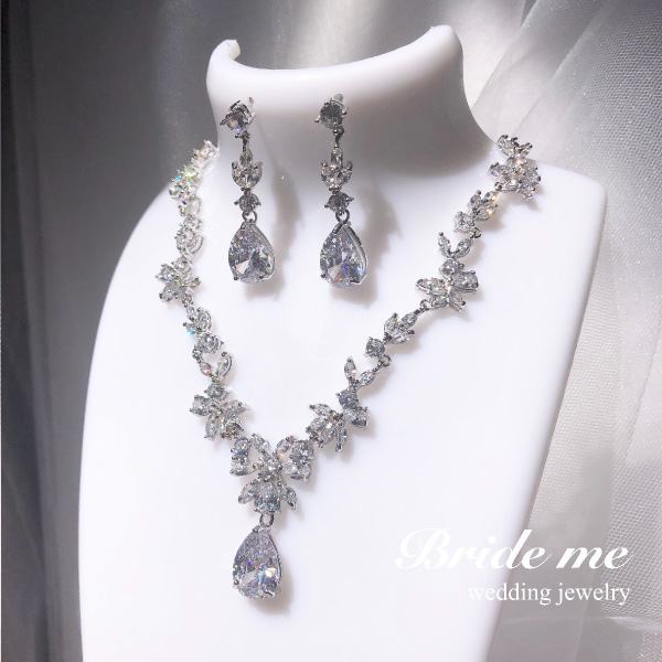 華やかで高級感ある花嫁ネックレスとピアスのセットです!キラキラ輝くジルコニアが、可愛らしく清楚な感じで大人気!大ぶりで花嫁のデコルテを華やかにするビジューネックレス。艶やかなビジューモチーフ。これひとつで顔周りを明るくしてくれます。微妙に風合が異なる仕上がりが、職人の手仕事ならではのこだわりをみせ、魅力的なアクセサリーとなっています。