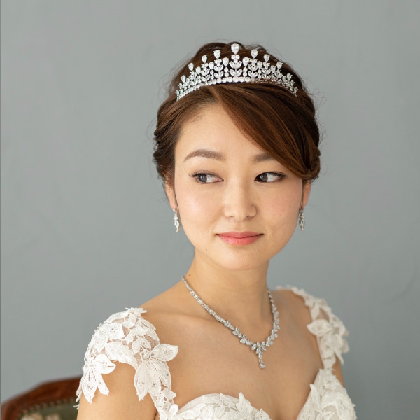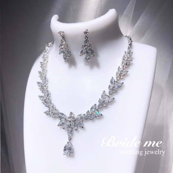 華やかで高級感ある花嫁ネックレスとピアスのセットです!キラキラ輝くジルコニアが、可愛らしく清楚な感じで大人気!大ぶりで花嫁のデコルテを華やかにするビジューネックレス。艶やかなビジューモチーフ。これひとつで顔周りを明るくしてくれます。微妙に風合が異なる仕上がりが、職人の手仕事ならではのこだわりをみせ、魅力的なアクセサリーとなっています。