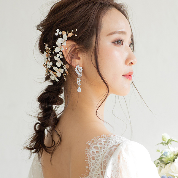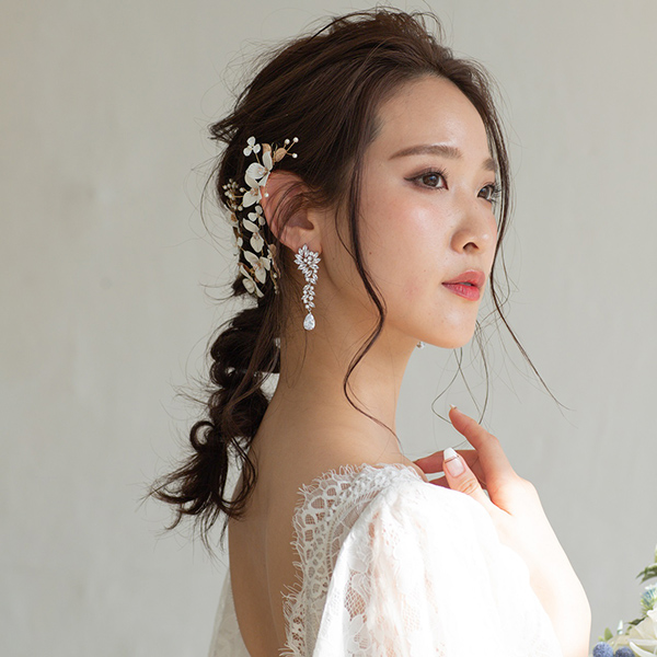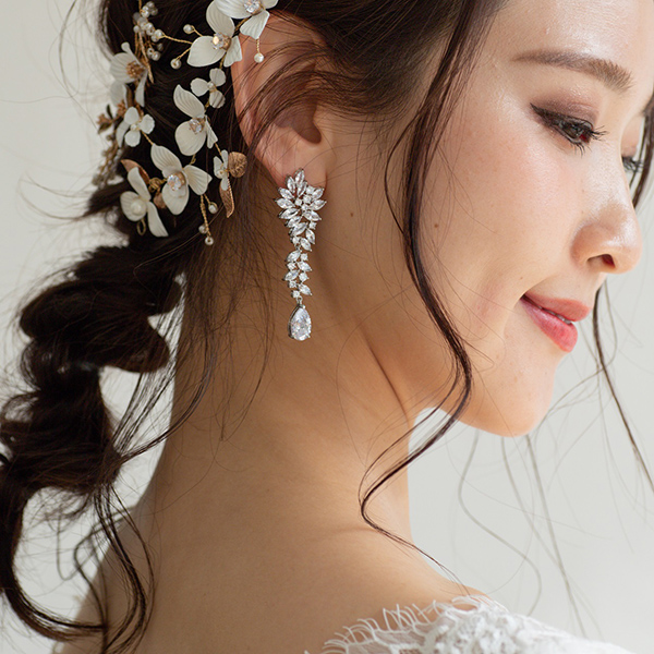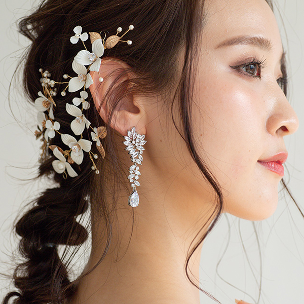 どんなドレスでも似合うビジューピアスなのでドレスとの相性も抜群!