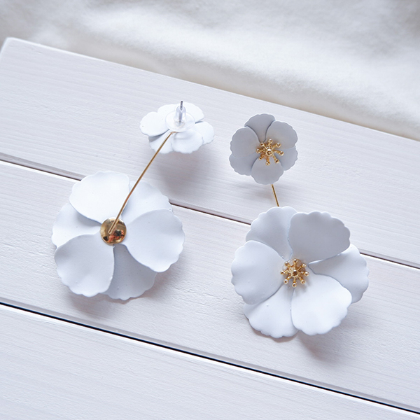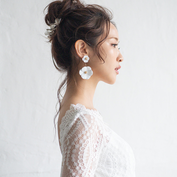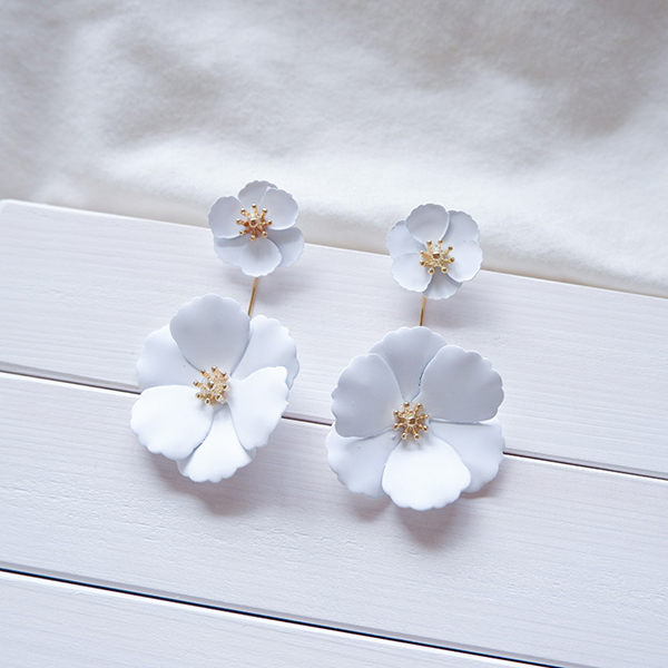 2wayタイプのホワイトフラワーピアスです。
