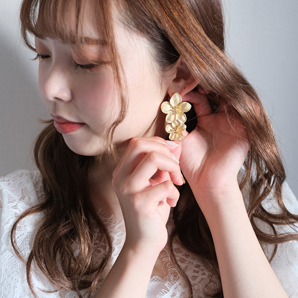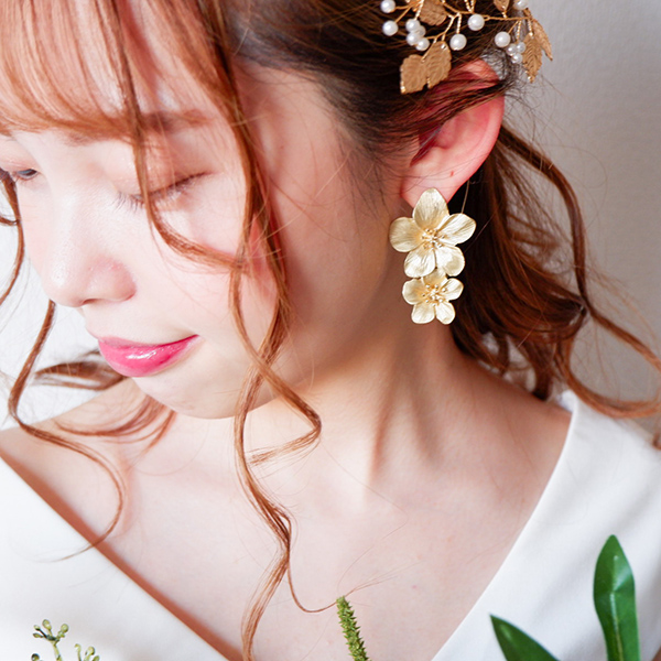 【送料無料】メール便 ウェディングピアス アンティーク フラワー ゴールド n4|ウェディング・ブライダルアクセサリーならPIARY(ピアリー)