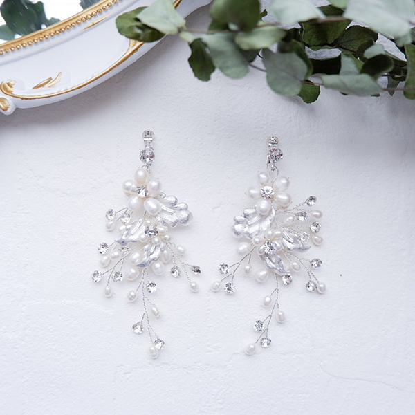 とても豪華な小枝ピアスで、たくさんのパールとリーフデザインがとてもキュート!