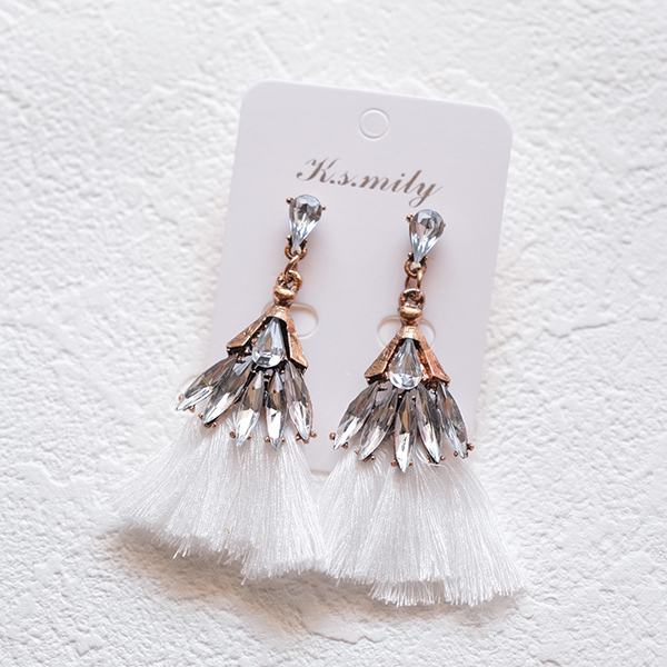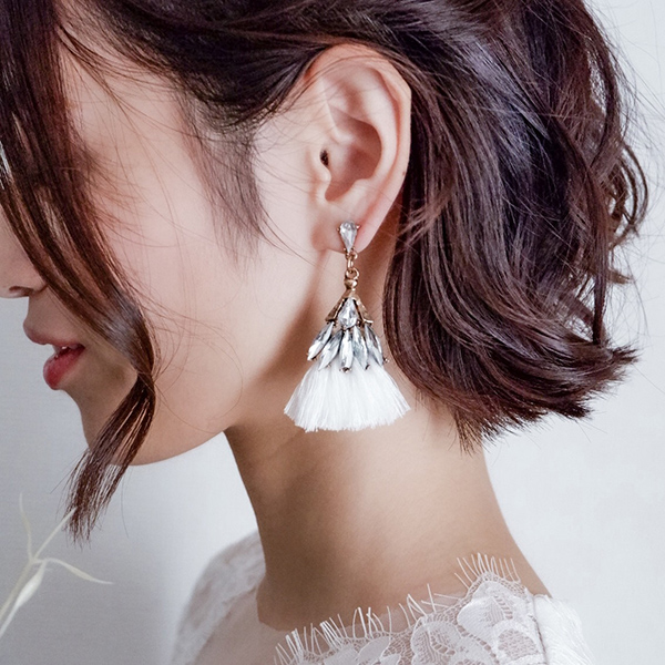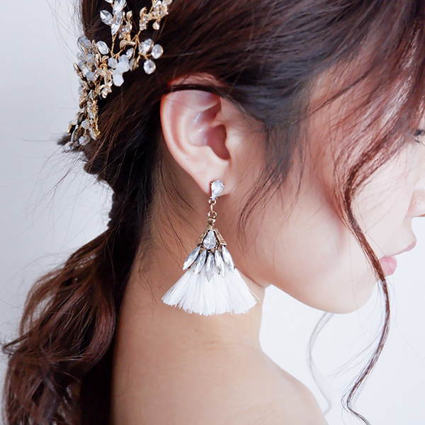 【送料無料】メール便 ウェディングピアス ビジュー クリスタル ホワイト タッセル ピアス k1|ウェディング・ブライダルアクセサリーならPIARY(ピアリー)
