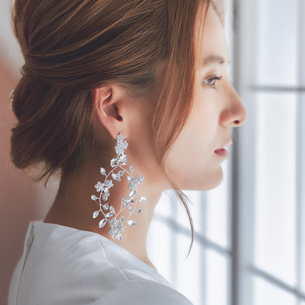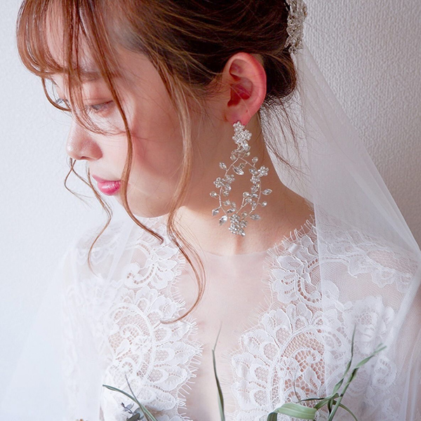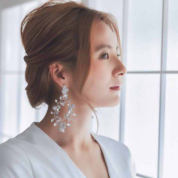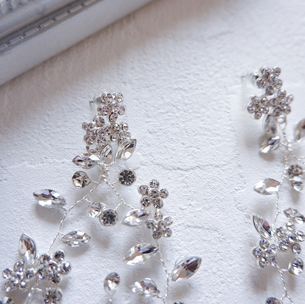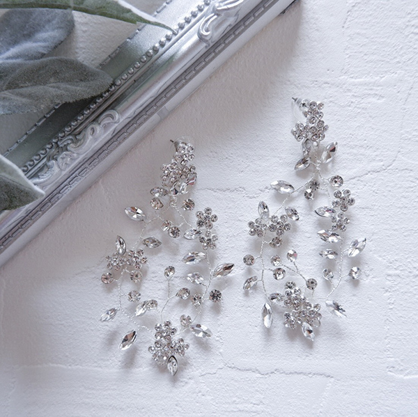 【送料無料】メール便 ウェディングピアス 小枝ピアス フラワー ビジュー リーフ シルバー i10|ウェディング・ブライダルアクセサリーならPIARY(ピアリー)