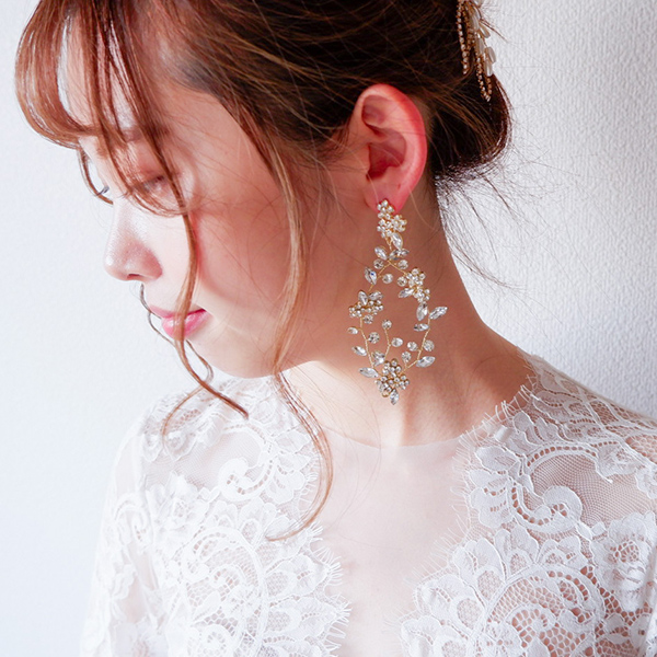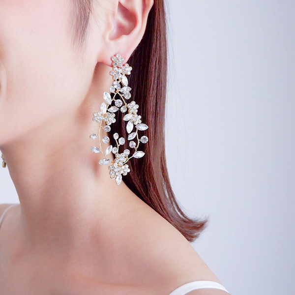 【送料無料】メール便 ウェディングピアス 小枝ピアス フラワー ビジュー リーフ ゴールド i9|ウェディング・ブライダルアクセサリーならPIARY(ピアリー)