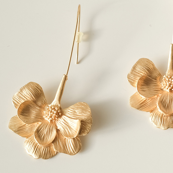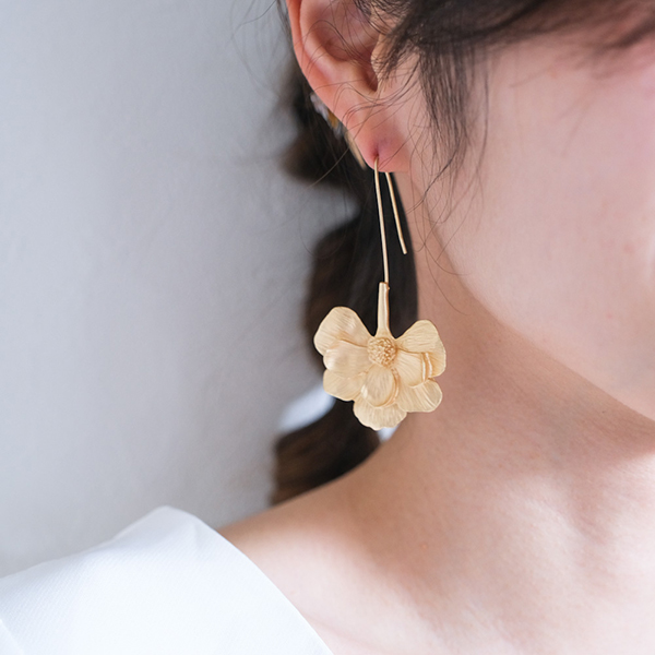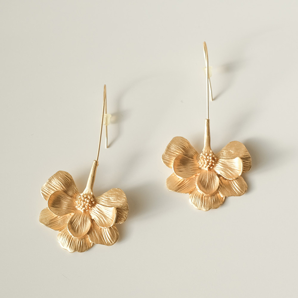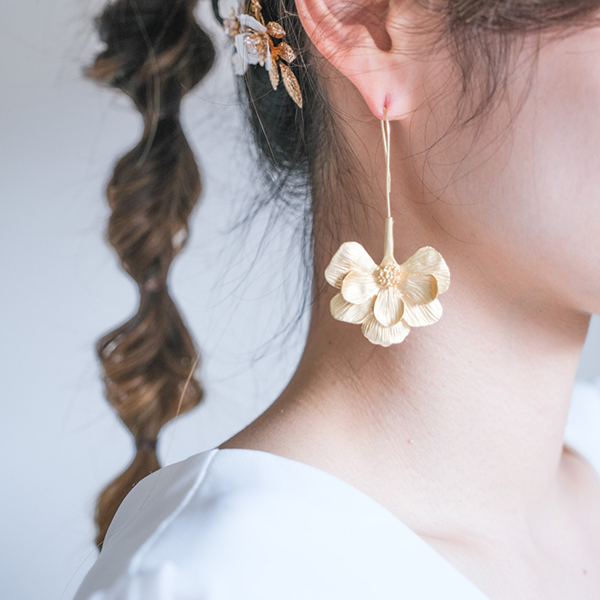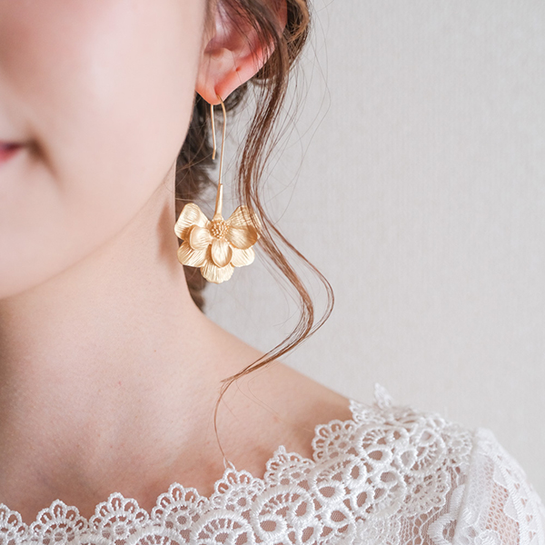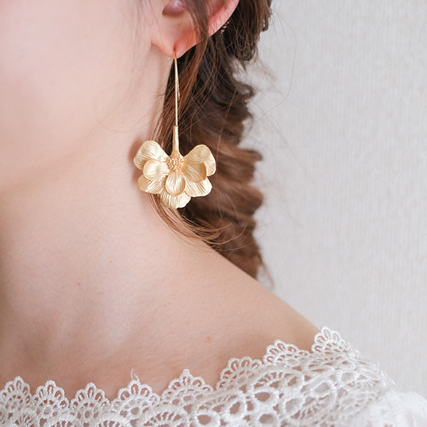 ゴールドフラワーのアンティーク風ピアスが耳元を華やかに!!