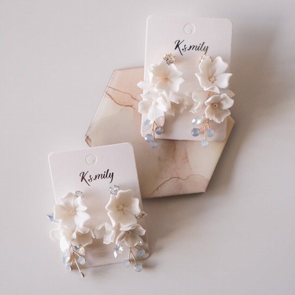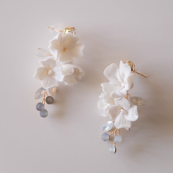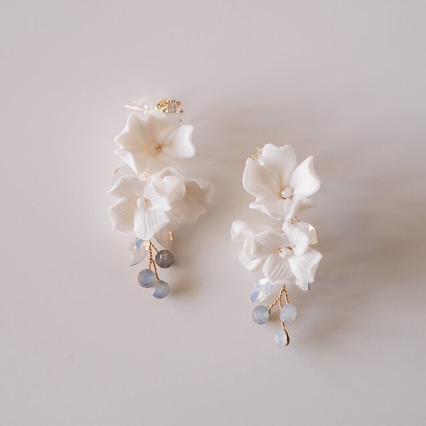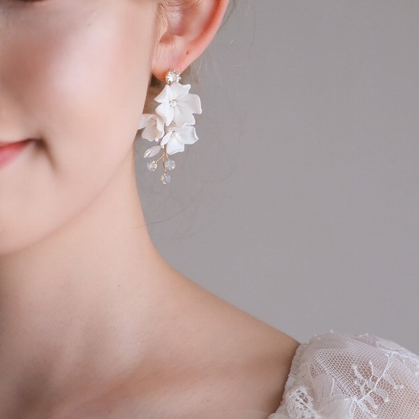 【送料無料】メール便 ブライダル 小枝ピアス ホワイトフラワー ジルコニア ゴールド u18|ウェディング・ブライダルアクセサリーならPIARY(ピアリー)