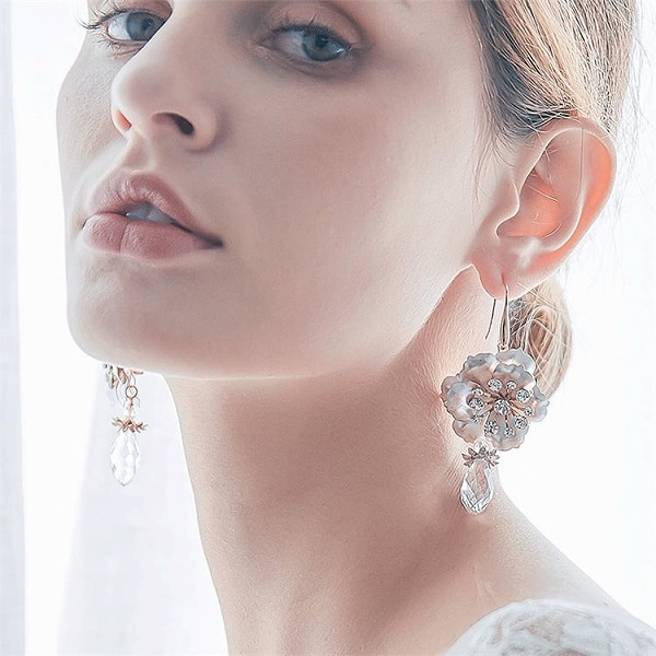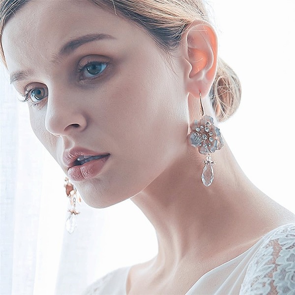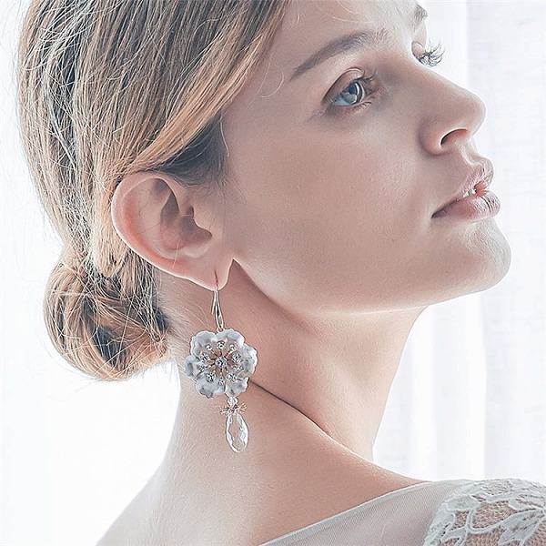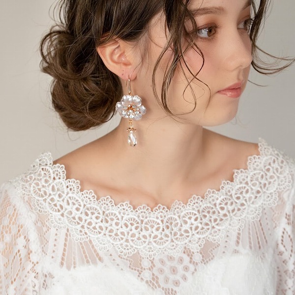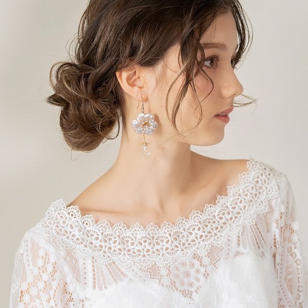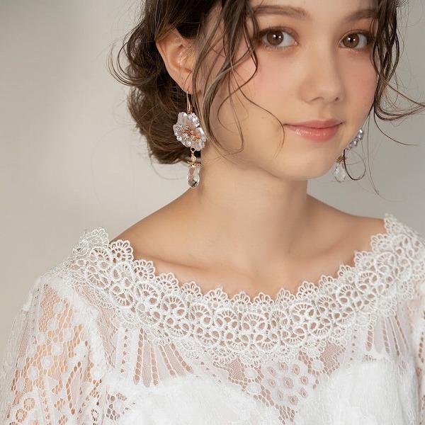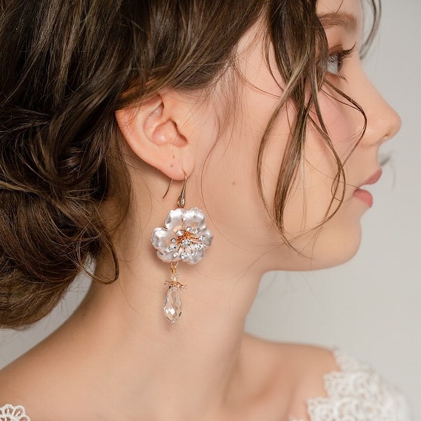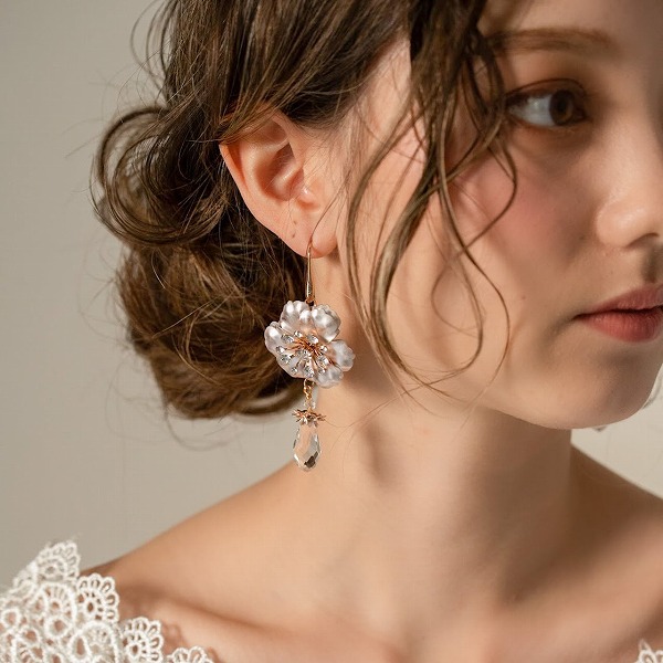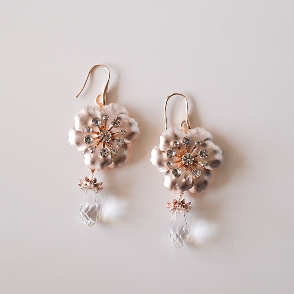 【送料無料】メール便 ブライダルピアス ピンクゴールドフラワー クリスタル u7|ウェディング・ブライダルアクセサリーならPIARY(ピアリー)