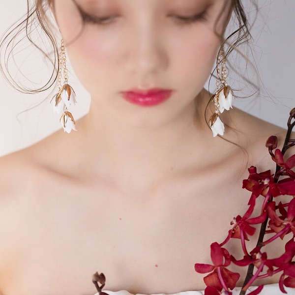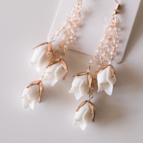 【送料無料】メール便 ブライダルピアス ホワイト ゴールド つぼみ u6|ウェディング・ブライダルアクセサリーならPIARY(ピアリー)