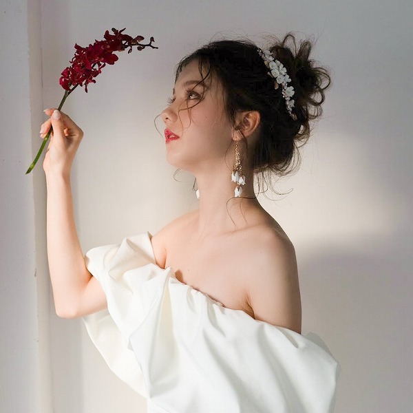 ホワイトのつぼみが垂れ下がったデザイン。ナチュラル、リゾートウェディングにピッタリ!これ1つでウェディングが華やかになりますよ♪