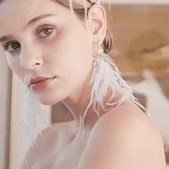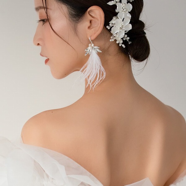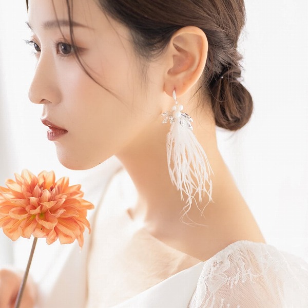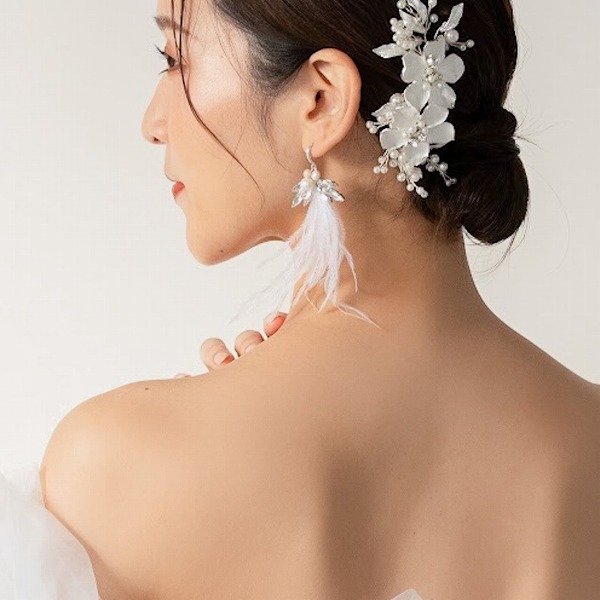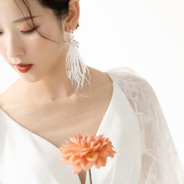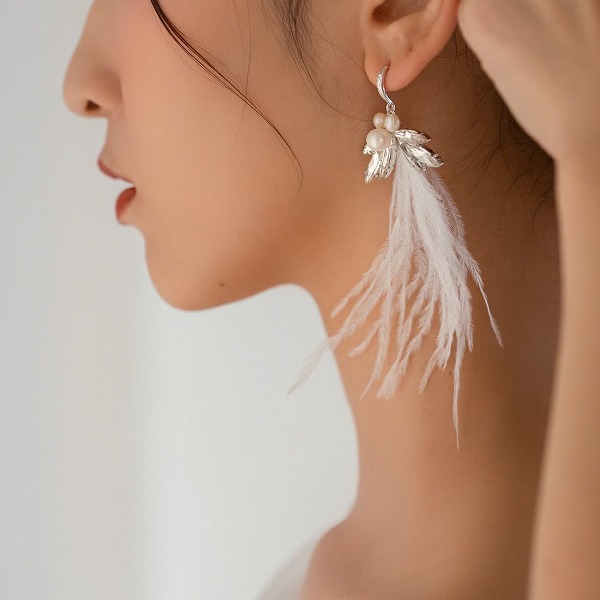 【送料無料】メール便 ブライダルピアス フェアリー ホワイトフェザー u5|ウェディング・ブライダルアクセサリーならPIARY(ピアリー)