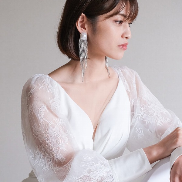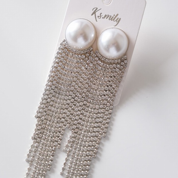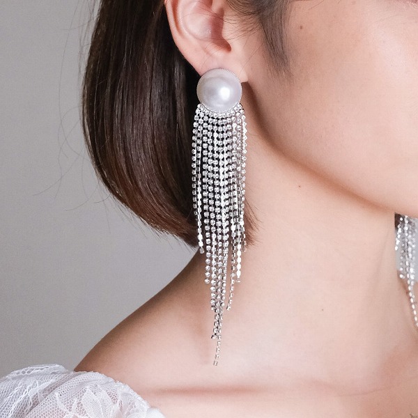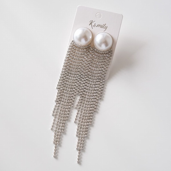 【送料無料】メール便 ブライダルピアス パール ビジュー シルバー ロング t23|ウェディング・ブライダルアクセサリーならPIARY(ピアリー)
