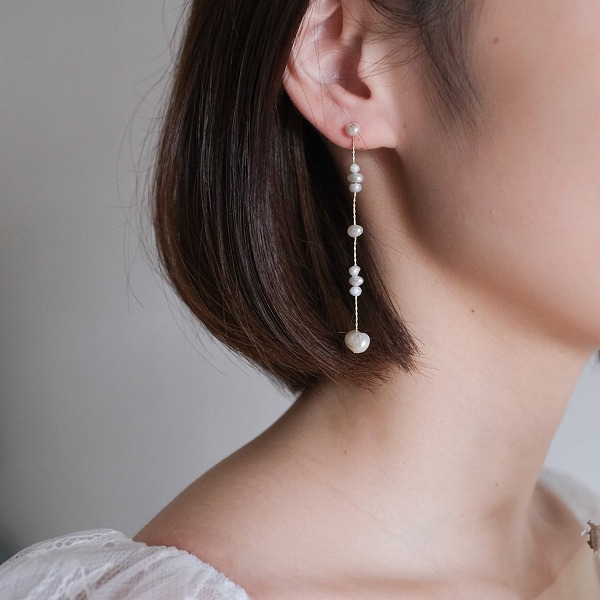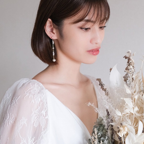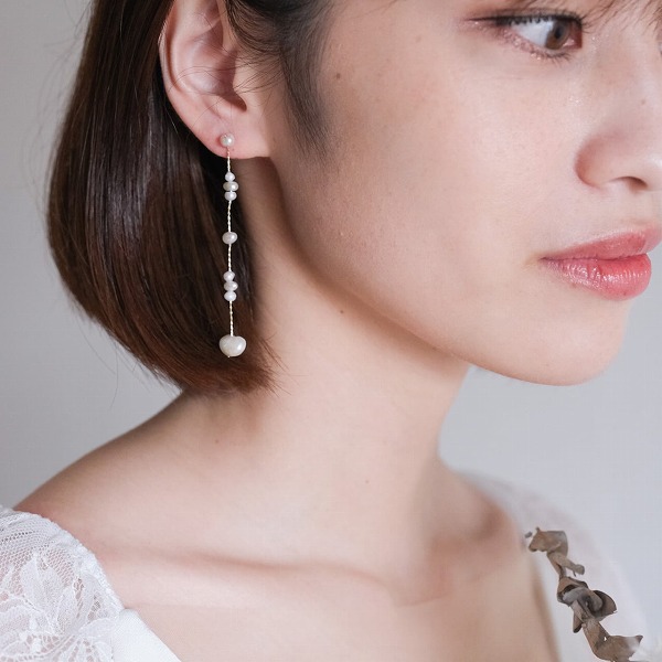【送料無料】メール便 ブライダルピアス パール ラインピアス ゴールド t21|ウェディング・ブライダルアクセサリーならPIARY(ピアリー)