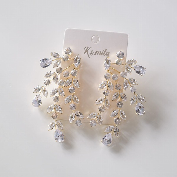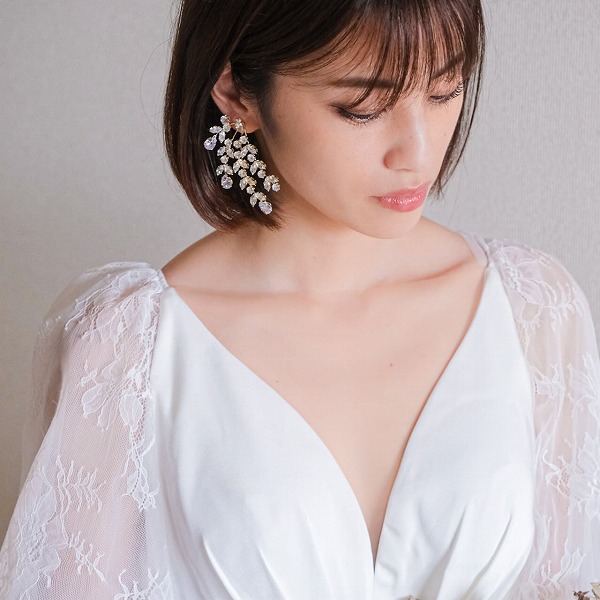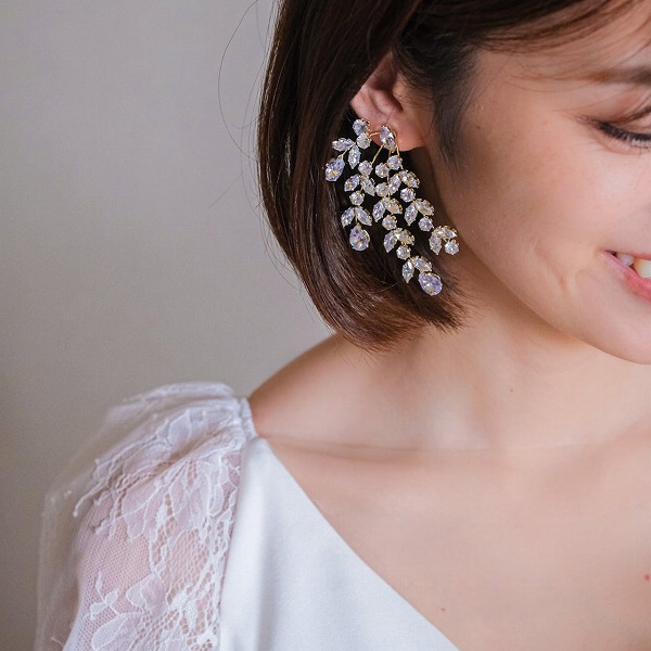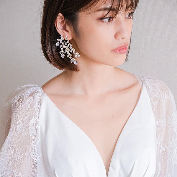 【送料無料】メール便 ジルコニア ウィング ウェディング ブライダルピアス ゴールド t14|ウェディング・ブライダルアクセサリーならPIARY(ピアリー)