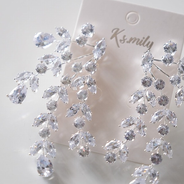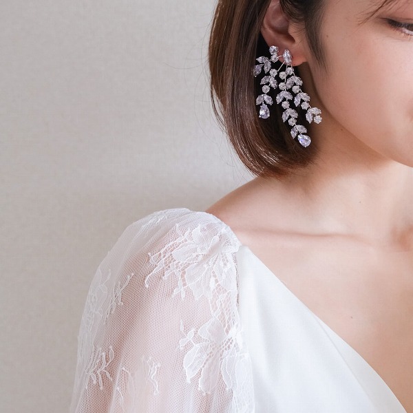 【送料無料】メール便 ジルコニア ウィング ウェディング ブライダルピアス シルバー t13|ウェディング・ブライダルアクセサリーならPIARY(ピアリー)