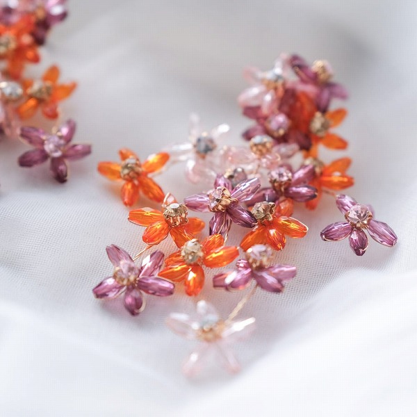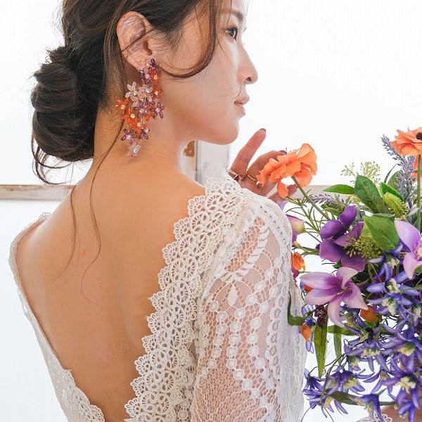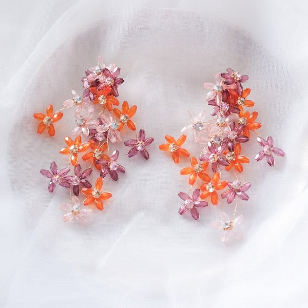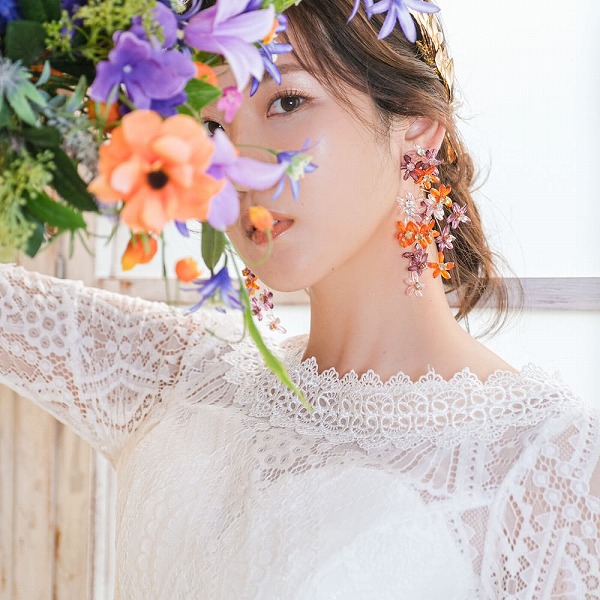 【送料無料】メール便 ブライダルピアス ビーズフラワー 紫オレンジ s1|ウェディング・ブライダルアクセサリーならPIARY(ピアリー)