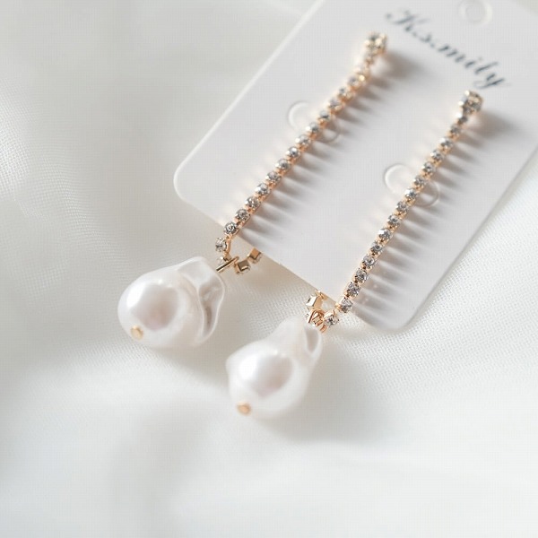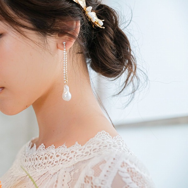 【送料無料】メール便 ブライダルピアス パール ビジュー ラインピアス ウェディング r29|ウェディング・ブライダルアクセサリーならPIARY(ピアリー)