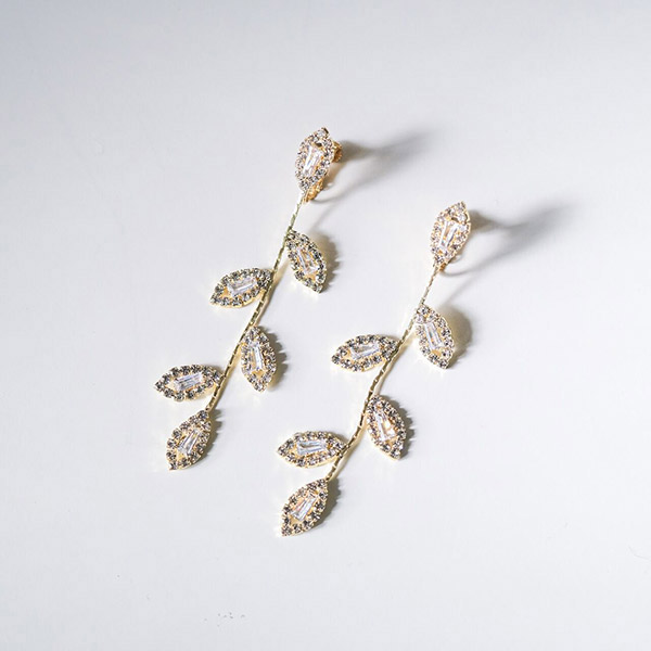 ゴールドの質感が高級感を演出し、耳元で華やかな輝きを放ち、花嫁様をより美しく引き立てます!あなたの特別な日に輝きを添えてくれる♪特別な一日を演出するためにぴったりです。