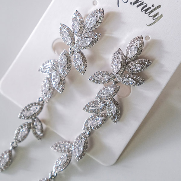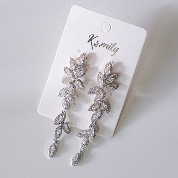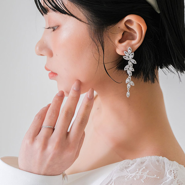 ジルコニアの輝きが、まるで本物のダイヤモンドのような輝きと美しさを放つ、シルバーカラーのブライダルピアス。