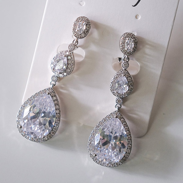 ジルコニアの輝きが、まるで本物のダイヤモンドのような輝きと美しさを放つ、シルバーカラーのブライダルピアス。