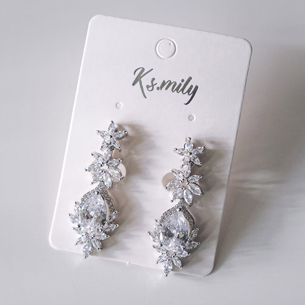 ジルコニアの輝きが、まるで本物のダイヤモンドのような輝きと美しさを放つ、シルバーカラーのブライダルピアス。