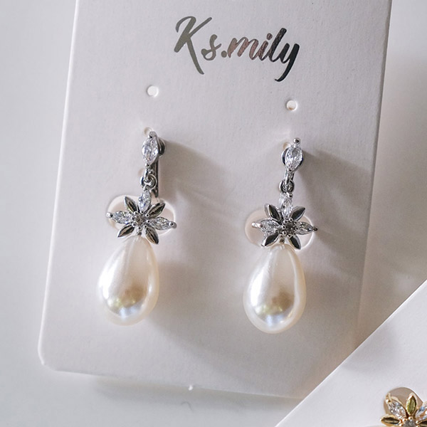 【送料無料】メール便 ウェディングピアス ジルコニア パール シルバー v37|ウェディング・ブライダルアクセサリーならPIARY(ピアリー)