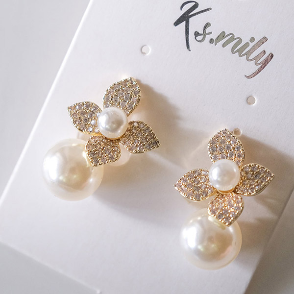 【送料無料】メール便 ウェディングピアス ジルコニア パール フラワー ゴールド v40|ウェディング・ブライダルアクセサリーならPIARY(ピアリー)
