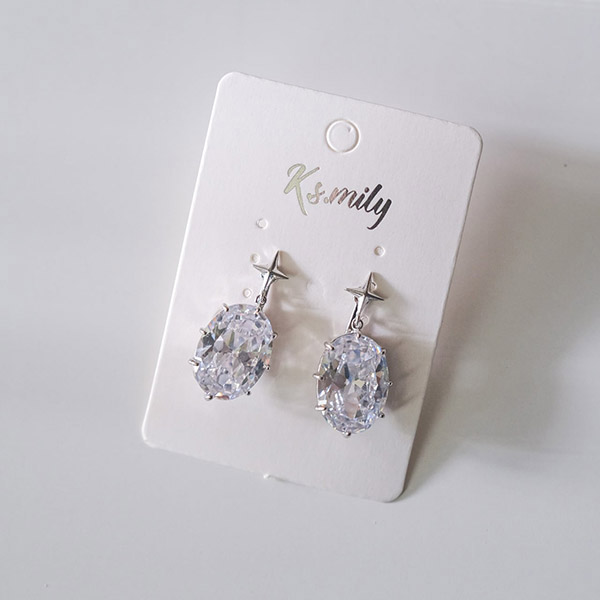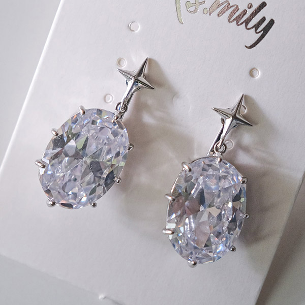 輝く瞳のような、オパール型のジルコニアが美しい、シルバーカラーのブライダルピアス。