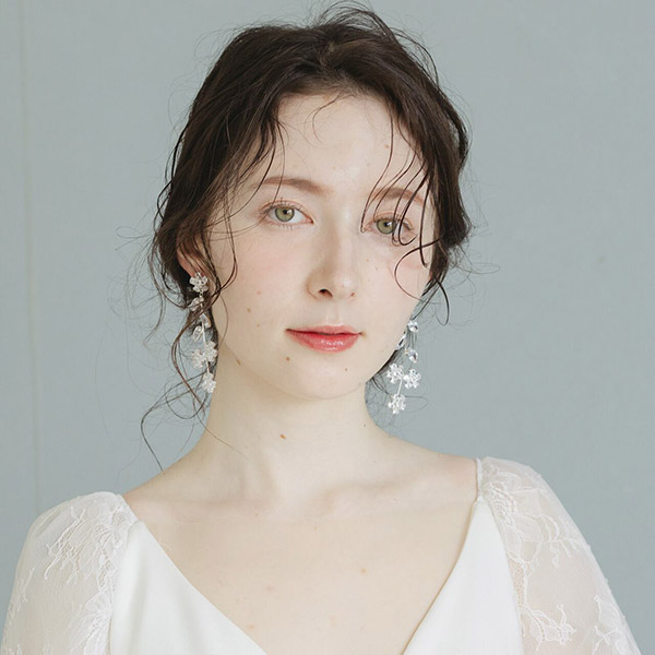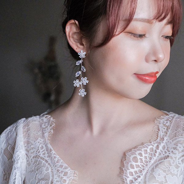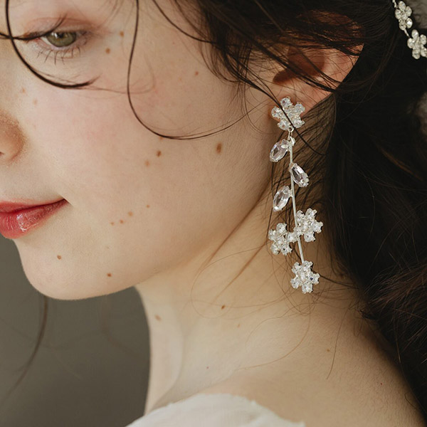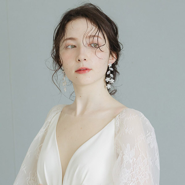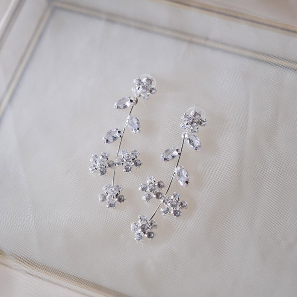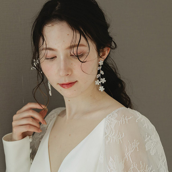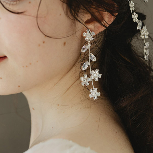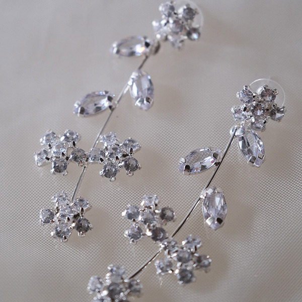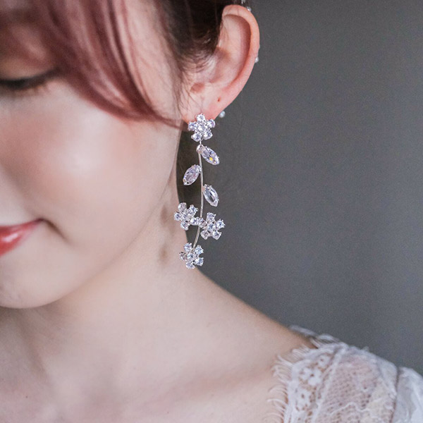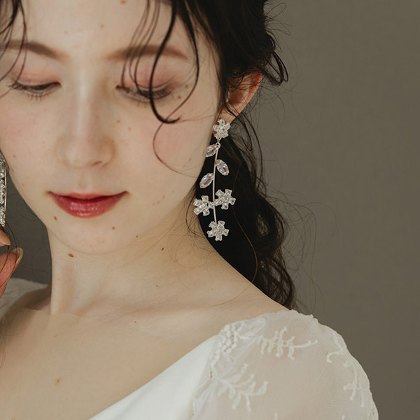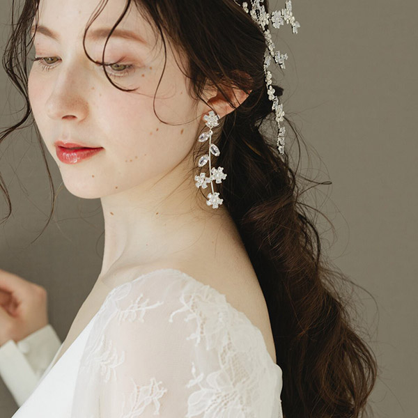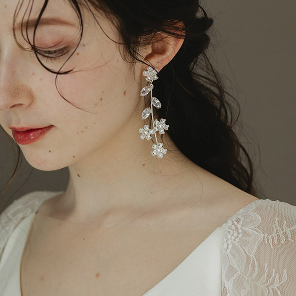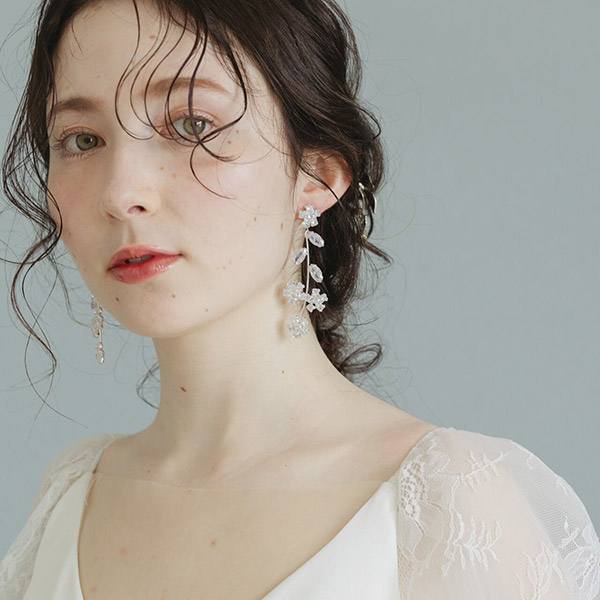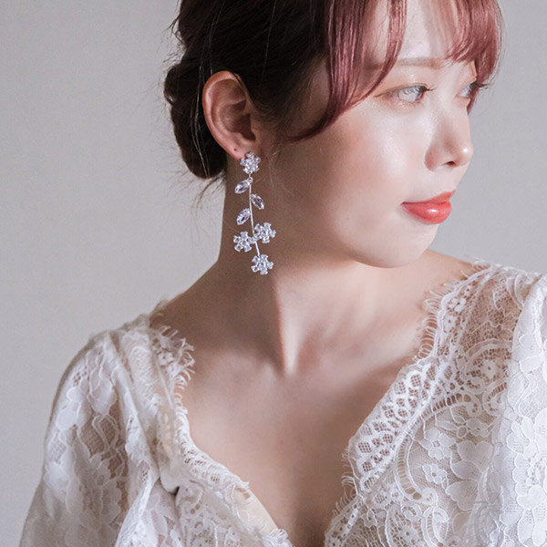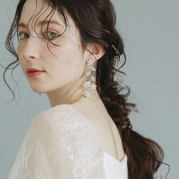 魅力的で華やかなフラワーとリーフモチーフのデザインが魅力のブライダルピアスです。